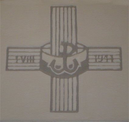 Na wewnętrznych ścianach kościoła pod sufitem oraz na pionowych wspornikach umieszczono kilkadziesiąt odznak różnych formacji Armii Krajowej, głównie oddziałów walczących w Powstaniu Warszawskim 1944 r.