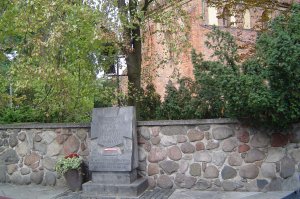 Kościelna róg ul. Przyrynek - przy murze kościoła p.w. Nawiedzenia NMP Tablica: "Tutaj 29.8.1944 hitlerowcy dokonali mordu na ludności cywilnej".