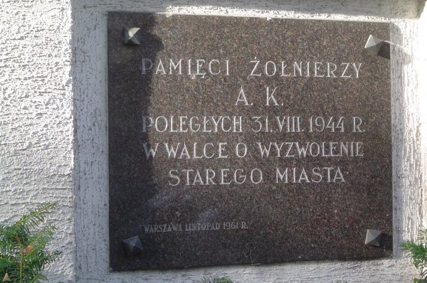 Bielańska 3. Tablica pamięci żołnierzy AK, poległych 31.8.1944.