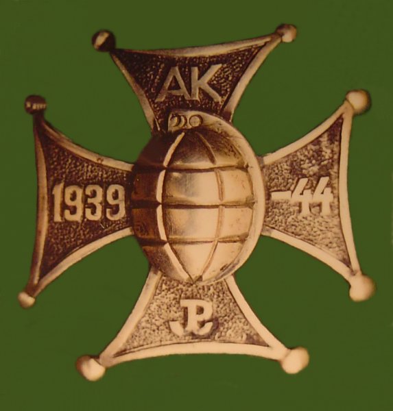 W centrum granat obronny. Na ramionach wypukła AK / 1939-44 i "kotwica".